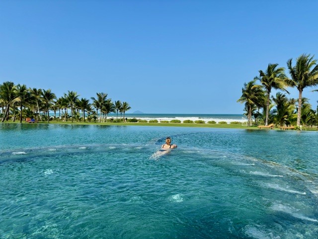Helaas alweer een van onze laatste dagen in het mooie Vietnam. Aangezien het weer nog steeds goed is, besluiten we de dag door te brengen bij het Premier Village Danang Resort. Hier kun je een pool pass kopen voor 250.000 Dong (ongeveer €9,30), waarmee je toegang krijgt tot het zwembad en ook eten en drinken kunt bestellen.
