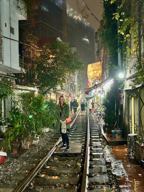 Helaas begon het tijdens onze terugreis naar Hanoi te miezeren, en dit weer hield aan tot in de avond. Nadat we onze spullen op de kamer hadden gezet, gingen we ergens een broodje eten. Aan het einde van de dag deden we een excursie: de Hanoi Food Tour en een bezoek aan Train Street.